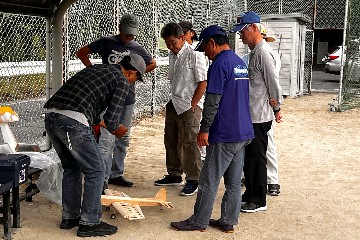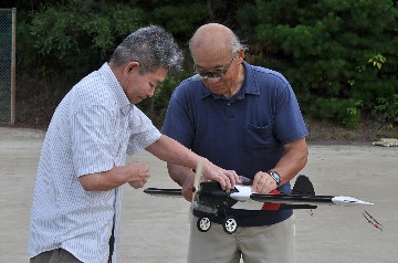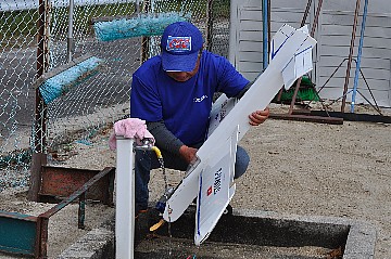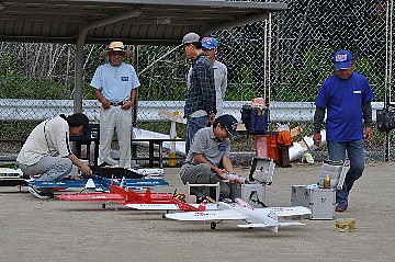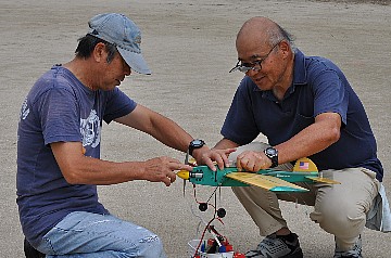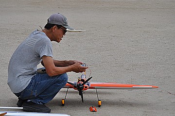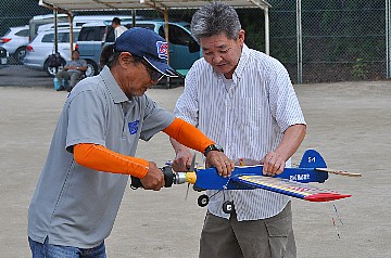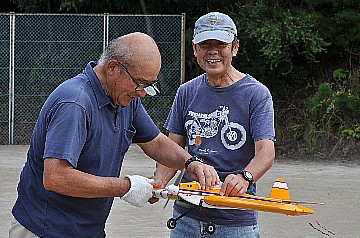 | 4 水洗い! エンジン不調で背面着陸したボスK@加藤さん。 豪快に水洗いしていました(-_-;) その後はエンジンも好調に。 |