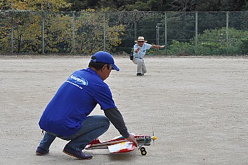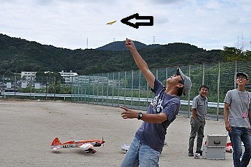 | 8 飛行会の様子 日本選手権のときと同じテイクオフの合図だ(笑)。 |
