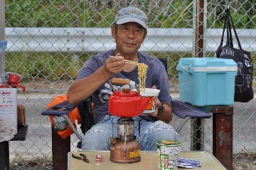 | 5 ♪探し物は何ですか?見つけにくい物ですか? 「ボクの飲みかけのコーラありませんか?」とベンチ周りを探し回っていたデスト@杉山さん。 自分で車の屋根に置いたのを忘れていました(笑) 頂き物のホエーブスは健在。 アルコールストーブで沸かすとカップ麺も美味しいのかな? |