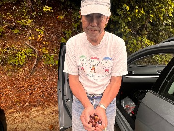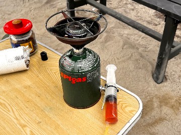 | 2 栗 今日はデスト@杉山さんが栗を拾っていました。 ごちそうになったコーヒーはEPIのストーブで。 燃料は注射器に入ったK&B100・・・な訳ない(笑)。 |