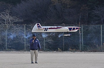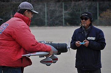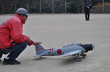 | 2 「九九式艦上爆撃機」初飛行! 正月飛行会で初飛行の予定がこのコンディション、しかも名古屋から清水整備特務大佐が来ているので飛ばしちゃいました。 2年がかりの飛行機の初飛行は心臓バクバク。 直しは・・・要りません、特待生 by プレバト 夏井先生 上反角やダイブブレーキなどの悪影響はなく、翼端おもりもバッチリ、すんなり飛んで傾きもなし。 これで枕を高くして眠れそうです。 |