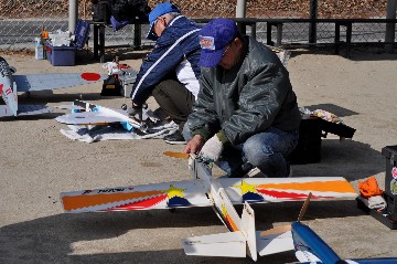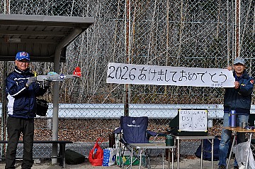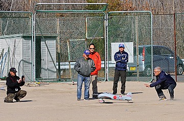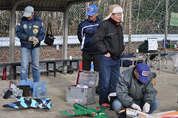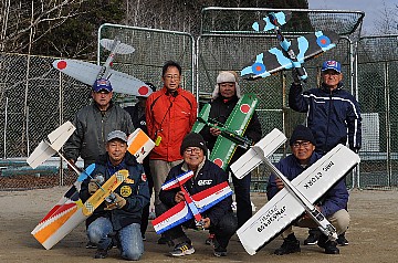 | 1 本年もよろしくお願いします! 久々の集合写真。 そして何より軍用機の集まり・・・これぞ岡崎・・・と勝手に思い込んでいます? そこそこの風でしたが、楽しく飛ばしました。 |
