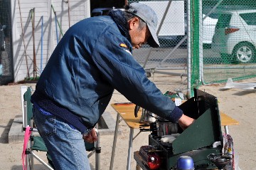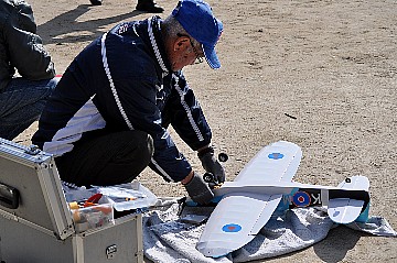 | 6 新作スピットファイヤー 三宅さんの新作スピットファイヤー。 ENYA19装備でパワフルに飛んでいました。 Uコン技術を基に自作とのことですが、半世紀前の記事ですよね(-_-;) |