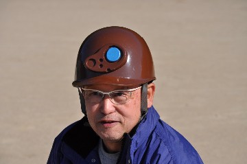| 白須さんのアンポンタン号はよく走りました(笑)。 堀田さんのヘルメット、ラピュタのロボット兵だ! |