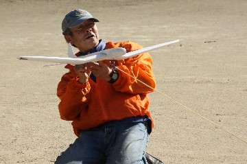 | 福田さんのヘビケラ。 手投げと同時にナイフエッジ状態。 | ||||
