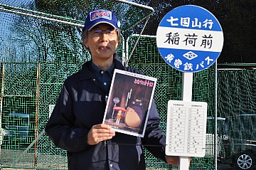 | 「七国山行きのバス停」。 これが一番飛ばなさそう、でも本人は自信満々? | ||||