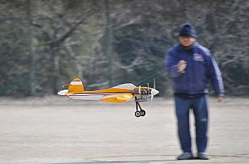久しぶりのエンジン機。 遠隔装置では始動しません(笑)、ペラはたくのも懐かしい。