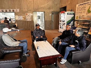 | 7 もぐもぐタイム 午後は遺品整理に苦慮している小木さんの貸倉庫へお邪魔することにしたので、もぐもぐタイム中に早退。 駐車場へ向かう途中、コジくんがやってきました。 |