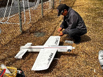 | 5 不屈の?修理 前回の飛行会で接地。 脚が吹っ飛び、スパッツが主翼を貫通しましたが、もう直ってる。 性能も変わらないようで良かったですね。 |