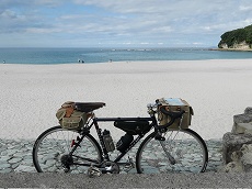 ずいぶん昔、30年ほど前に2回だったか、車で来たことがありますが、改めて自転車で来てみると、これまで以上に素晴らしい! うんざりするほどのアップダウンと岩場ばかりの景観のこの紀伊半島南岸の中で、奇跡的に穏やかな砂浜が広がるこの白良浜は、自転車で訪れるとひときわ白く美しく見えるのでした。