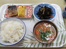 丼物と迷いましたが、おかずを選ぶことに。焼きサバと出汁巻き、ひじきの煮物、とん汁をセットにして¥750税込! ここが白浜とは思えないリーズナブルな価格設定。このサバが一級品でした! 脂が乗っていて塩加減バッチリ。とん汁も体が温まり、すっかり満足しました。
