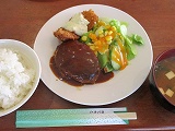 今日のランチはハンバーグ&魚のフライ。