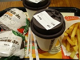 スパイシーワッパーJr、ポテト、ホットコーヒーMで一人¥610少々。