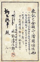 | 大正十四年になって、水野淳治郎(豊明園初代)は、オモト界の景気回復もさることながら、自己の経営活動のこともあって、オモトの買い入れに個人債権を発行して、積極的に買い入れを始めました。 この個人債権は、水野淳治郎がすでに大正八年ごろから懸賞金にあてるなどして、ぼつぼつ試みていたことがありましたが、今回はもっと大規模な債権発行で、額面は二十五円、二十円、十五円、十円および五円の五種類で、額面二十五円のを天神祭の二十五日にちなんで『天神さま』、額面二十円のは弘法大師の命日にちなんで『弘法さま』と愛称し、大手では東京の松谷正太郎や京都の大辻久一郎、愛知県武豊の榊原純平宛の五千円という巨額に達するものもありました。 |