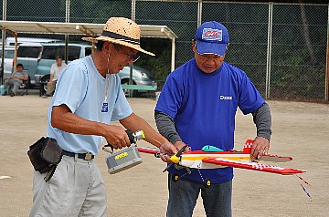 4 水洗い! エンジン不調で背面着陸したボスK@加藤さん。 豪快に水洗いしていました(-_-;) その後はエンジンも好調に。 |
