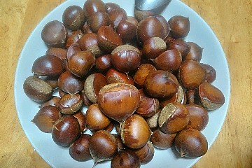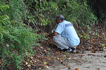 2 秋の気配 朝早くから舞木運動広場の奥に怪しげな人影(笑)。 岐阜から参加のボンカレー@大塚さんが栗を拾っていました。 右は大塚さんから届いたメールの写真。 帰宅後、早速煮込んだようです。 美味しそう! |