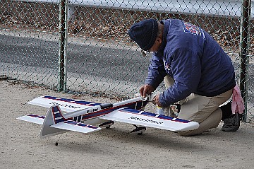 | 2 「九九式艦上爆撃機」初飛行! 正月飛行会で初飛行の予定がこのコンディション、しかも名古屋から清水整備特務大佐が来ているので飛ばしちゃいました。 2年がかりの飛行機の初飛行は心臓バクバク。 直しは・・・要りません、特待生 by プレバト 夏井先生 上反角やダイブブレーキなどの悪影響はなく、翼端おもりもバッチリ、すんなり飛んで傾きもなし。 これで枕を高くして眠れそうです。 |