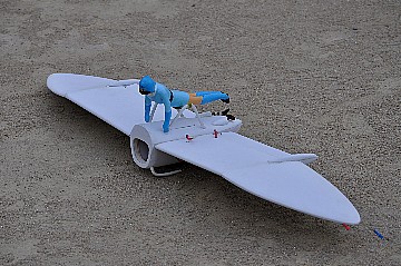 | 5 おまけ メーヴェ 重心位置が翼の55%、 ファンを回して振り回してみると、クルクル回ってしまいます。 重心を前にする手だてを考えないと飛ばないですね。 バイシャンタン 飛行会後、山田さんと久々にバイシャンタンの「卵キャベツ麺」を食べてきました。 数枚撮った写真から一番の変顔を(笑)。 |