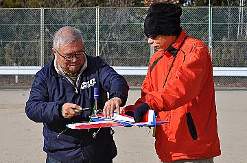 | 1 本年もよろしくお願いします! 久々の集合写真。 そして何より軍用機の集まり・・・これぞ岡崎・・・と勝手に思い込んでいます? そこそこの風でしたが、楽しく飛ばしました。 |