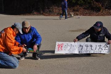 | 2 開会式 エントリー機を眺めて満足。 もう飛行会・大会はどうでもいいと思いつつも開会式。 得点表にそれぞれ記入して受付終了。 ジブリポイント、ゲテポイント、飛行ポイント、爆笑ポイントで競います。 |
