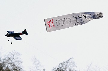 | 競技開始前に開催を祝してバーナー飛行。 「風立ちぬ」にちなんで?零戦。 | ||||