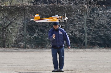 久しぶりのエンジン機。 遠隔装置では始動しません(笑)、ペラはたくのも懐かしい。