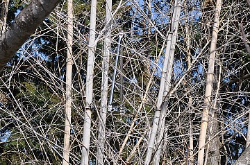 | 2 空を見ろ! 鳥だ! 飛行機だ! スーパーマン・・・ではありません 会長が指さす先、竹林のかなり高いところにアウトドア用のトングが引っ掛かっていました。 DST@杉山さんが竹林の中から回収。 それにしても誰が何のために? |