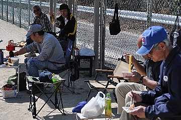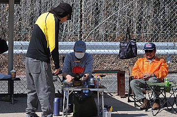 | 3 もぐもぐタイム 一日飛行会なので、ホエーブスストーブで沸かしたお湯で皆さんもぐもぐ。 最近のカップ麺の値上げに皆さんの工夫話が聞けました。 |