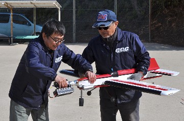 | 1 調整が間に合わない(-_-;) 会長が飛行会予定を追加してくれた、ラッキー! でも風速3〜4m。 まともに飛ばせないので調整が間に合わず、大会でぶっつけ本番になりそう(-_-;) |