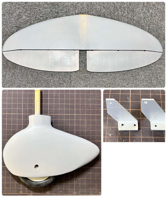 尾翼も完成、サーフェイサーを吹きました。実機が羽布張りの部分は絹張りとし、絹目が潰れない程度にセルロースを塗りました。