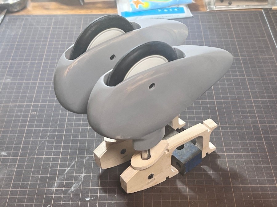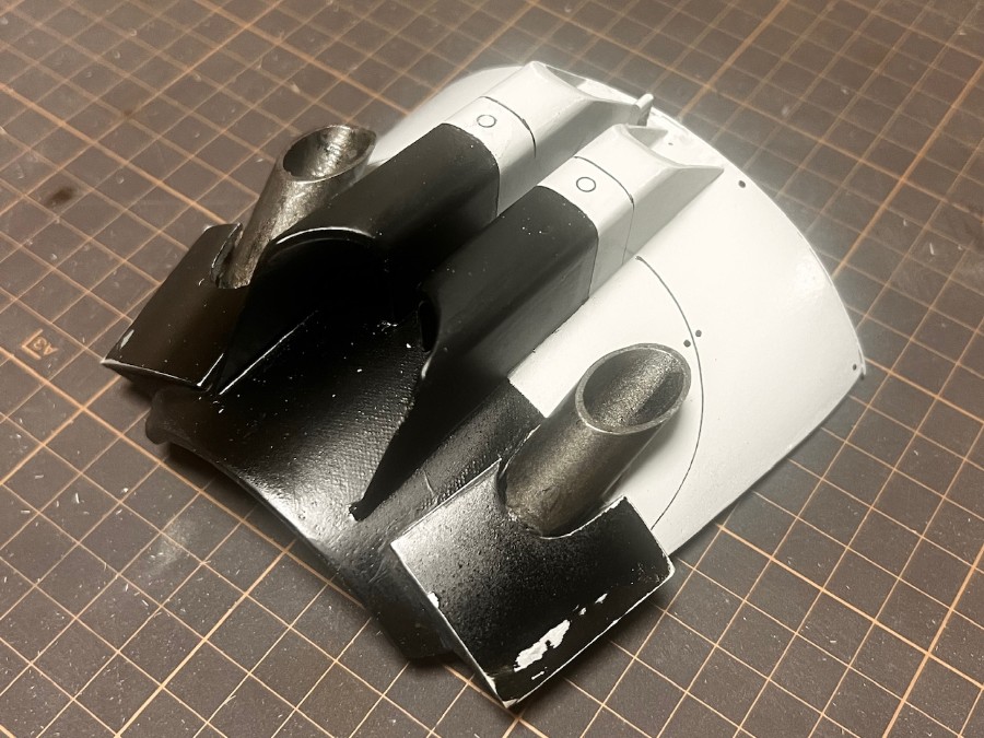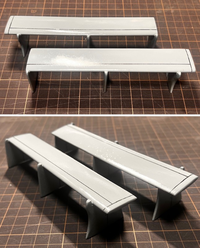 スパッツはひとまず完成、軽くサーフェイサーを吹きました。