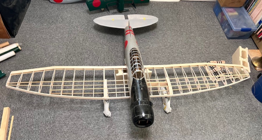 残るは主翼上面の編隊灯と爆弾懸架・着艦フックをペイントすれば完了かな。11月にはウレタン仕上げ、12月にはリンケージ、アンプなどの取り付け予定。