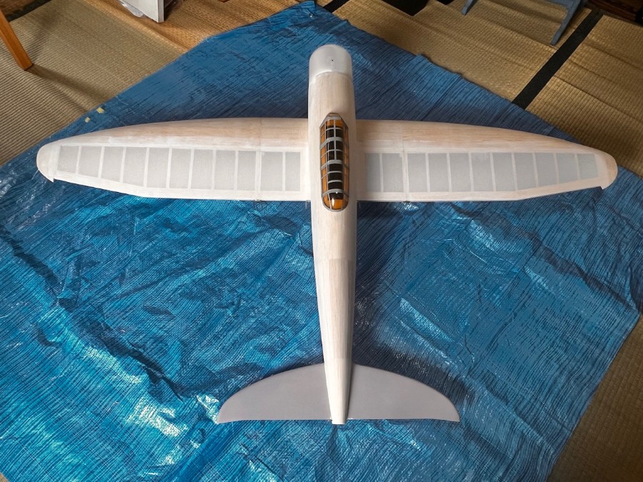 機種が短いのでテールヘビーにならないよう、とにかく軽く作ることが必要ですが、実機同様に羽布張りのところは羽布(絹)張りにするつもりです。軽量化にもなるので、このこだわりは正解かも。