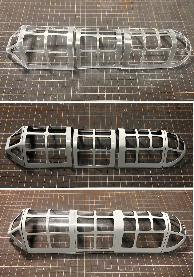 スケール感アップのため、柘植師匠に教わった窓枠を別パーツで作る方法としたものの、複座のキャノピーは大きく、窓枠もたくさん。