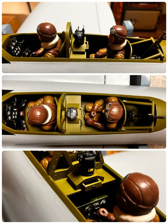 キャノピーを乗せてみると、パイロットや7.7mm旋回機銃が収まらず、高さを削ったり調整しながらここまでできました。