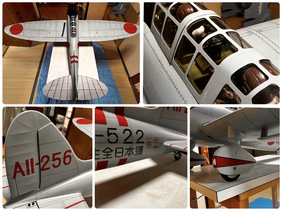 終盤、集中力も途切れ、かなり雑な作りになったけど、当初の狙いどおり拘った部分、実機どおりの羽布張りの表現やダンパー付きの脚など工夫しつつイメージどおりには出来ました。