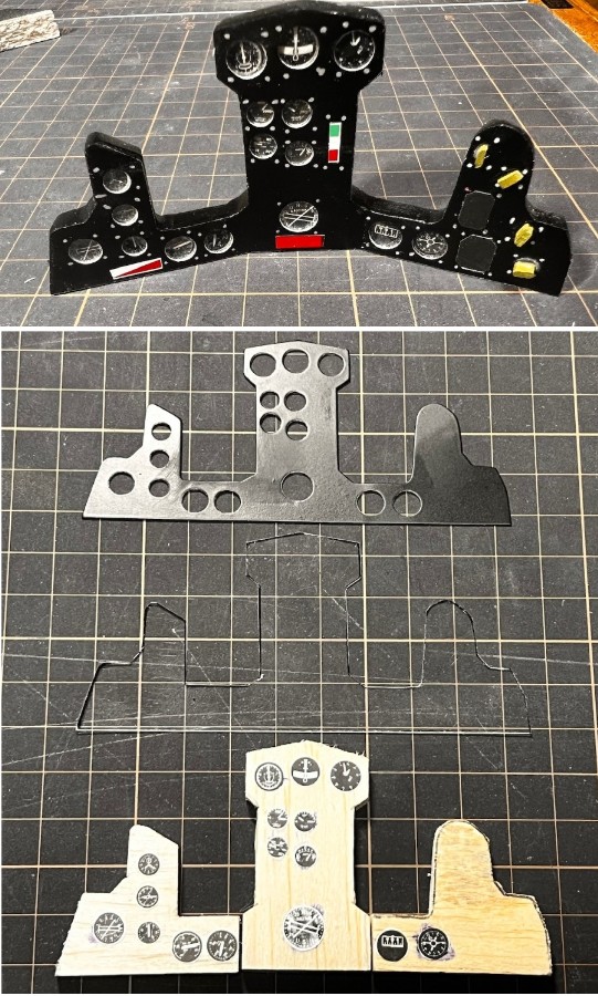 Cアルミパネルの次に塩ビ板を接着し、計器の付いたバルサ板を接着