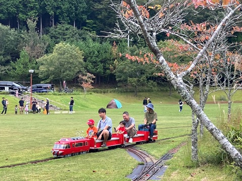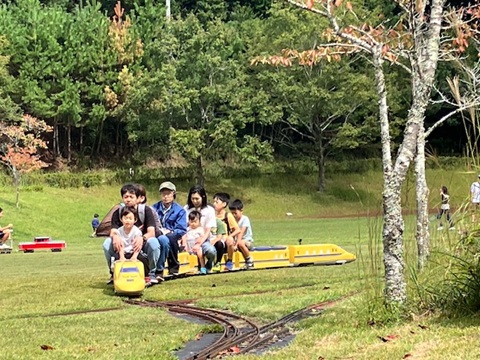 早くも落葉の時期になってきました。 この風景のなか、赤色と黄色の電車が映えます。