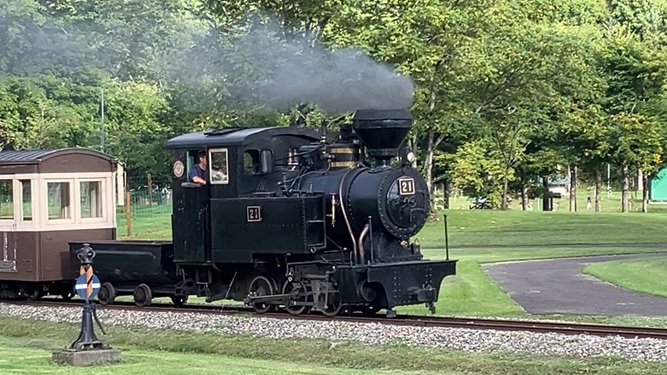 下り列車の時は、機関車が引っ張って行くが、折り返しの時は反対側の運転席から機関車を操作して推進運転となる。