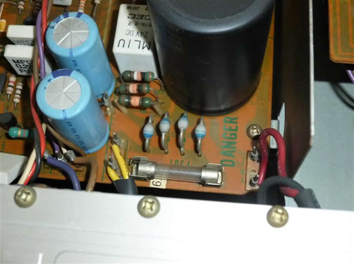 入手した状態では電源回路の抵抗3個が焼き切れていた。この抵抗はSW-ON時の突入電流を