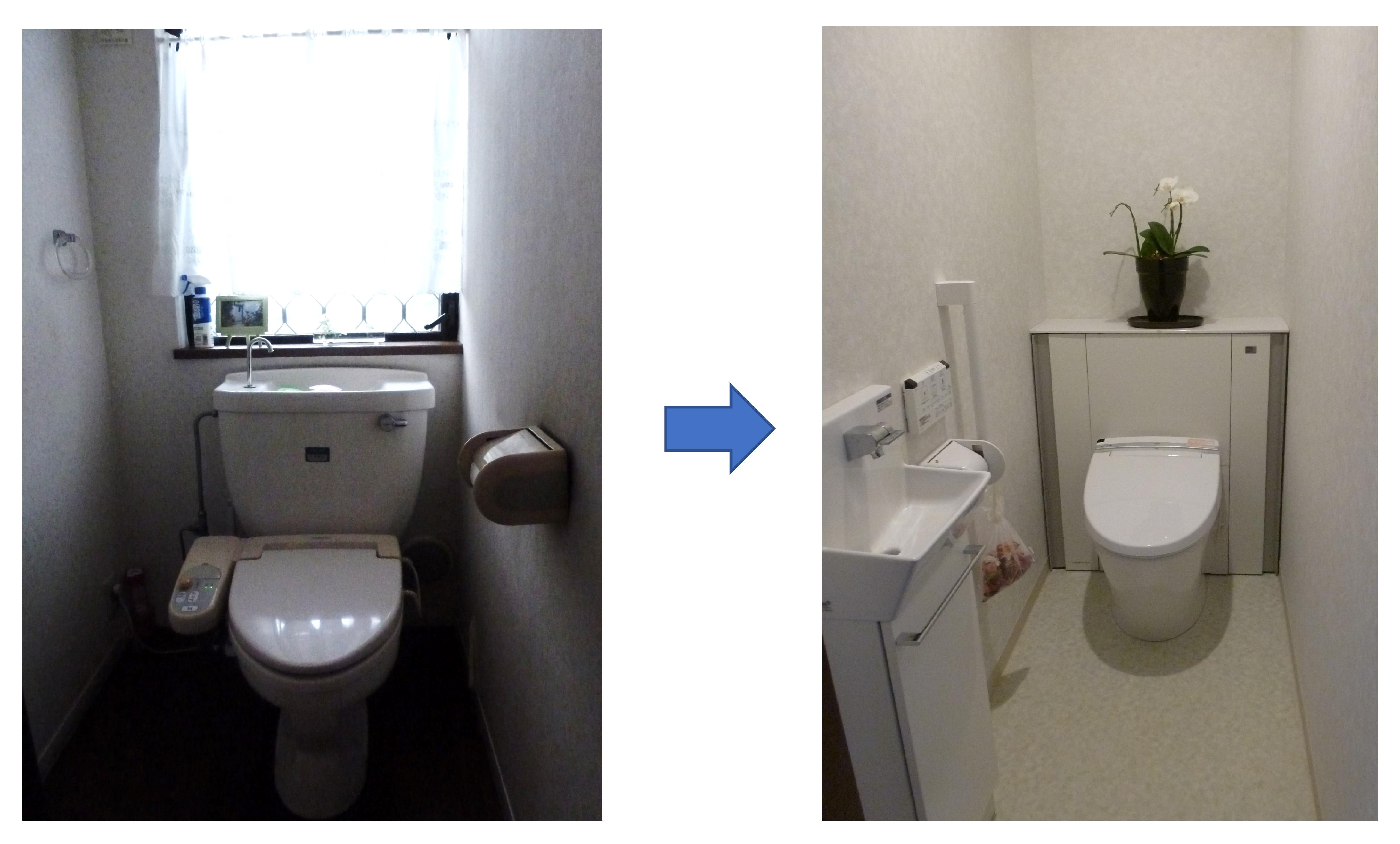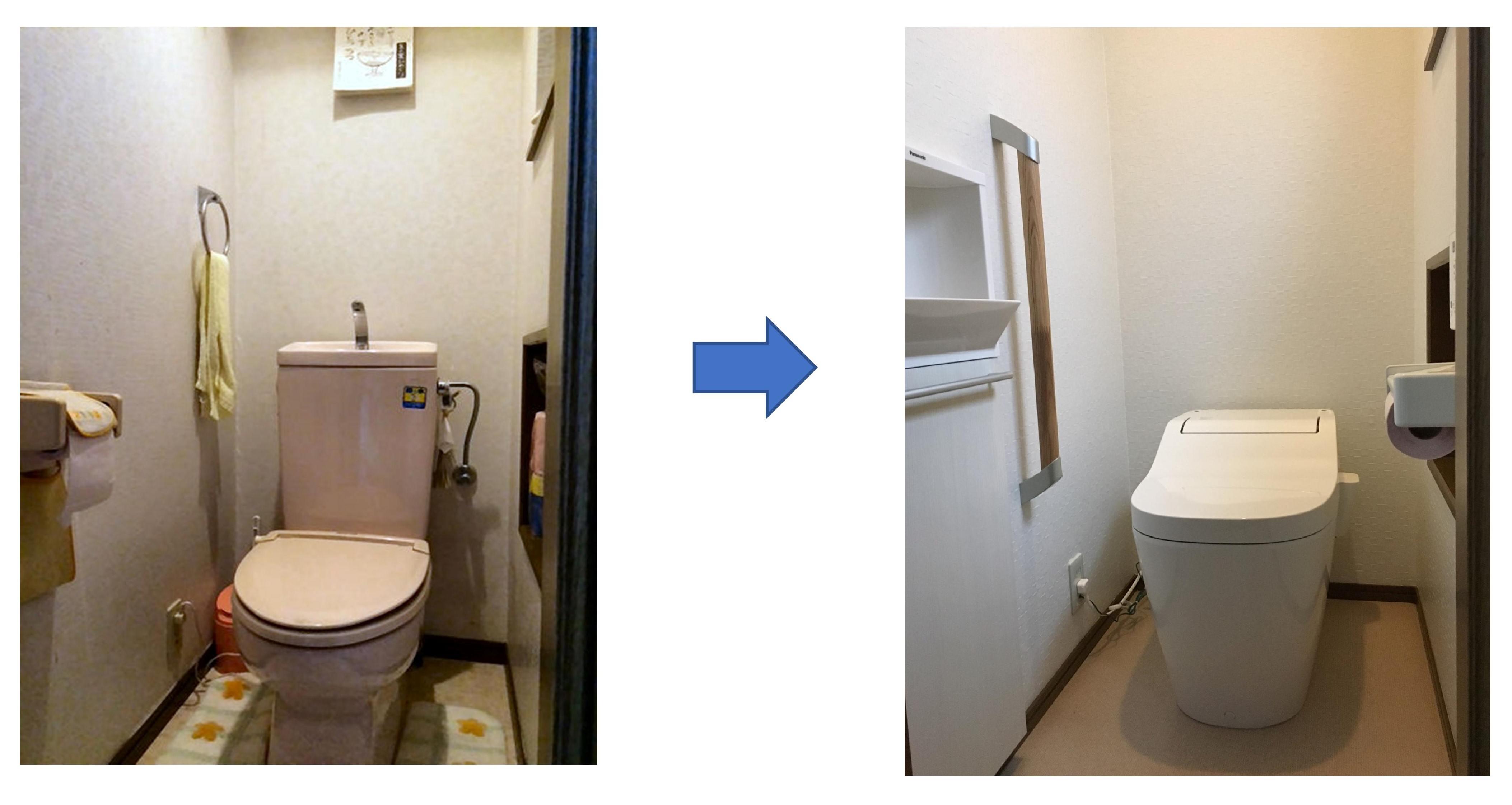 トイレの別に手洗いが付いて手を洗いやすくなり、手すりも付いて立ち座りの動作も快適になりました。