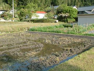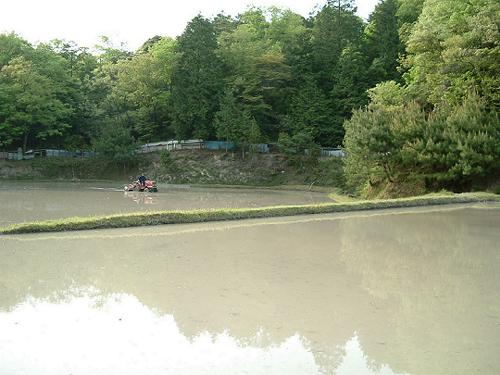 E代かきを行い3〜4日泥を沈静化させます。(ここでも私の愛車が頑張っています。)