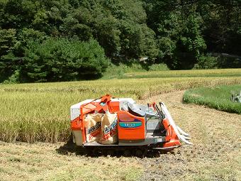 この田んぼに行くためには軽トラックしか入れないためコンバインも乗用では一番小さい型です。