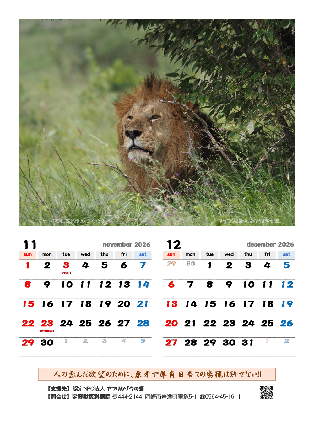 ・・ 2026年カレンダーのご案内 ・・  ぽんつく獣医の“きらめき写心館”